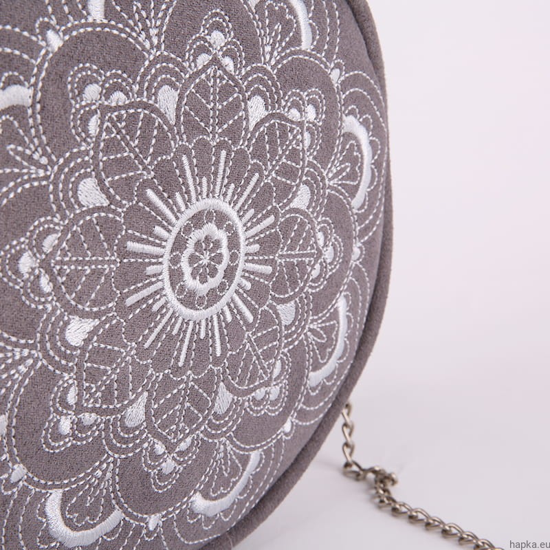 Round bag with original embroidery GRAPHITE MANDALA.